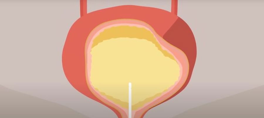 Draining of urine during catheterisation creates negative pressure inside the catheter. This causes the bladder mucosa to get sucked into the eyelets of the catheter, blocking them, leading to a urine flow stop.1