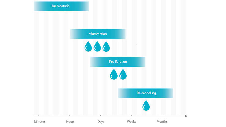 As a wound begins to heal, the amount of exudate it produces usually decreases. However, many chronic wounds can get stuck in the inflammatory healing stage where harmful bacteria might develop.