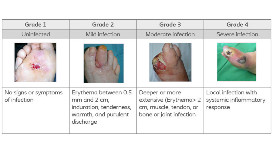 Once you determine that the wound is infected, your next step is to grade the infection. This will help you select the best treatment option. The Infectious Diseases Society of America (IDSA) has created a grading scale that can help you.5